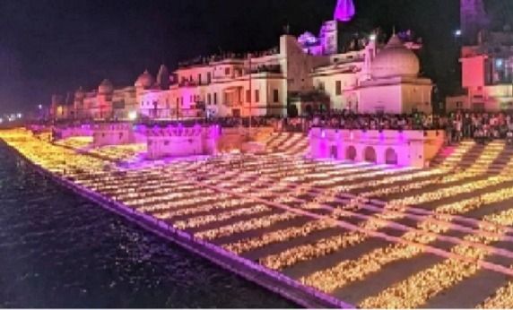 উত্তরপ্রদেশের অযোধ্যায় জমকালো দীপোৎসব উদযাপনে একসঙ্গে ২৫ লাখেরও বেশি মাটির প্রদীপ জ্বালানো হয়েছে – এটি একটি নতুন বিশ্ব রেকর্ড। সরায়ু নদীর তীরে ২৮ লক্ষেরও বেশি দিয়া (প্রদীপ) স্থাপন করা হয়েছিল, যা উপরে থেকে দেখলে একটি দুর্দান্ত সোনালী আভা উপস্থাপন করে।আয়োজকরা অন্তত ২৮ লাখ দিয়া আলো জ্বালানোর পরিকল্পনা করেছিলেন; যাইহোক, তারা একটি নতুন বিশ্ব রেকর্ড তৈরি করতে ঠিক ২৫,১২,৫৮৫ ডায়া আলো করতে সক্ষম হয়েছিল ।প্রধানমন্ত্রী নরেন্দ্র মোদি এই দৃশ্যটিকে “আশ্চর্যজনক, অতুলনীয় এবং অকল্পনীয়” বলে বর্ণনা করেছেন।